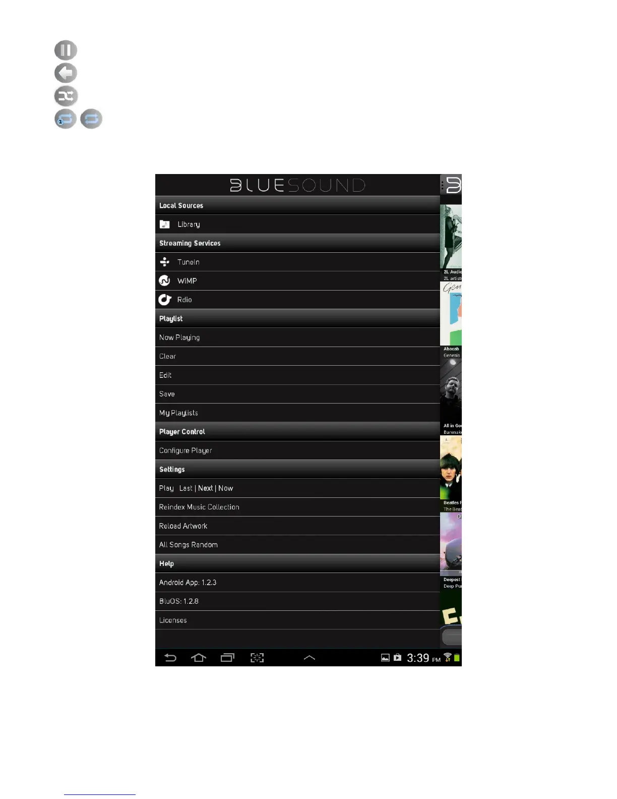 The following explains the function of each item in the Bluesound Navigation Drawer.