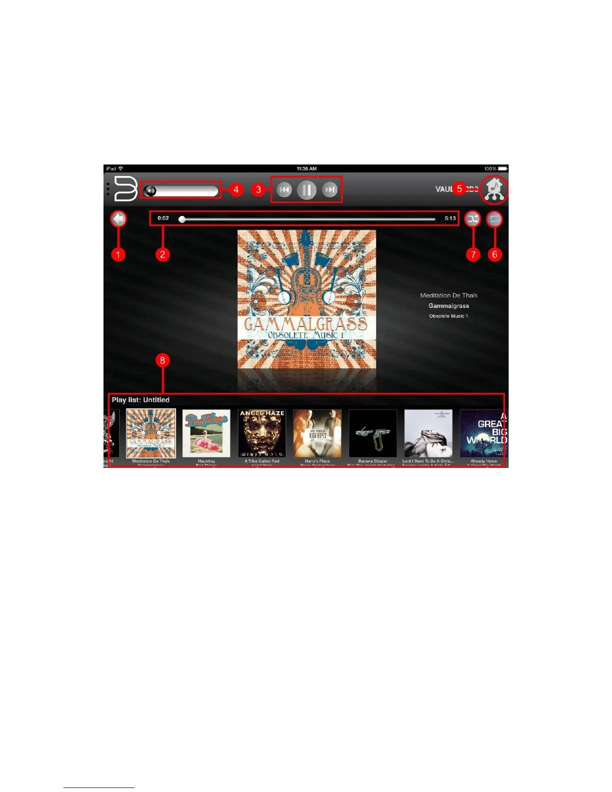through the list. Select and start playing a song by tapping the album art. The currently playing song is highli ghted.