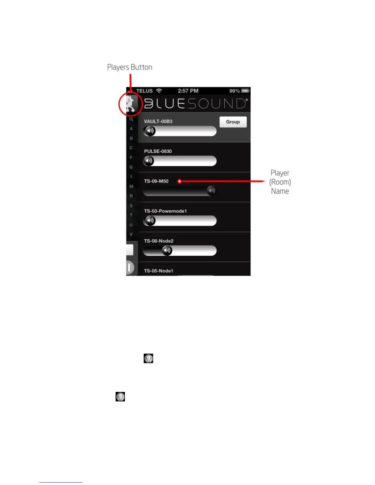 1. Select the Players Button . Select the player (room) on your network you wish to control.