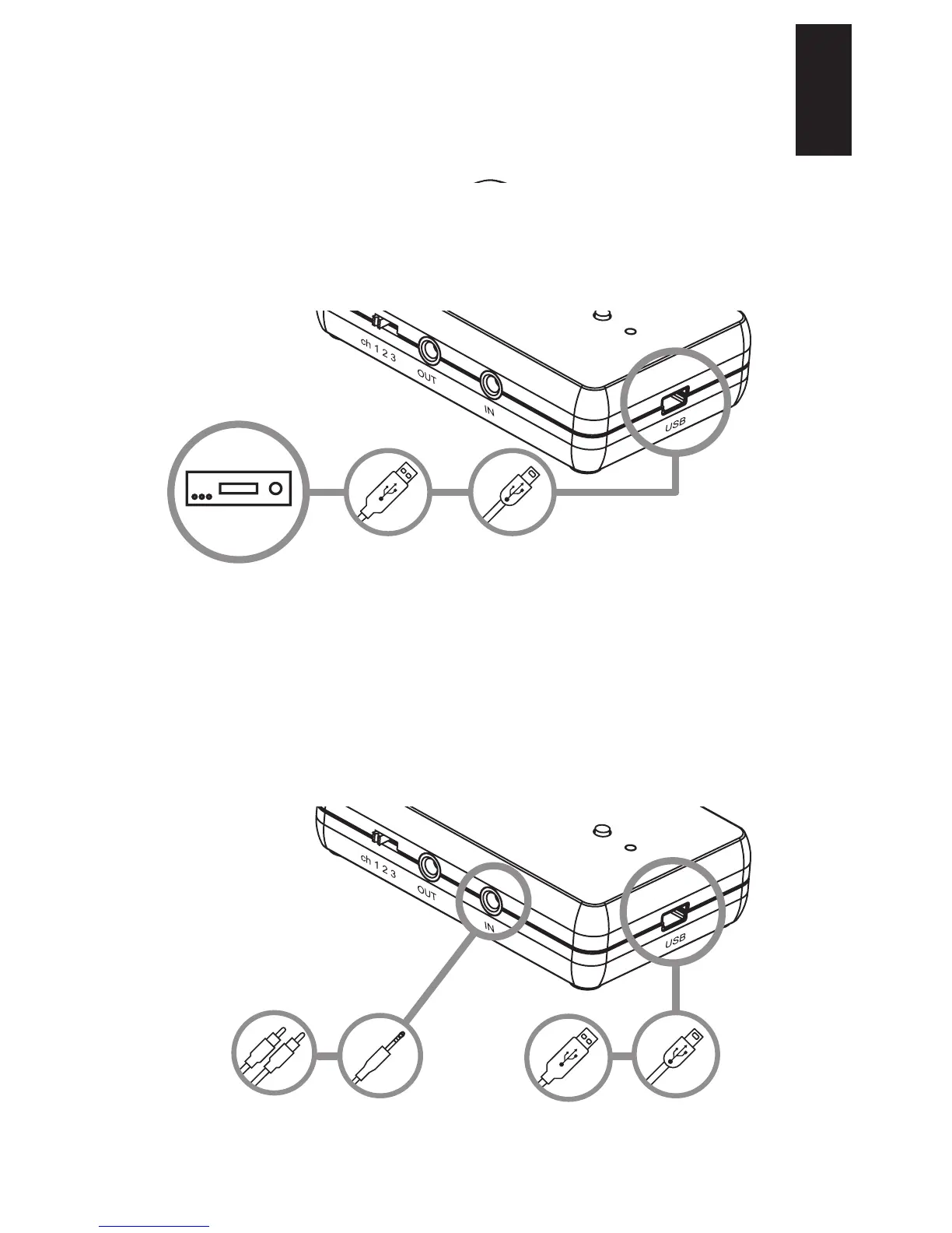 For Analog Audio in Tx Mode, use the Stereo RCA to 3.5mm Cable