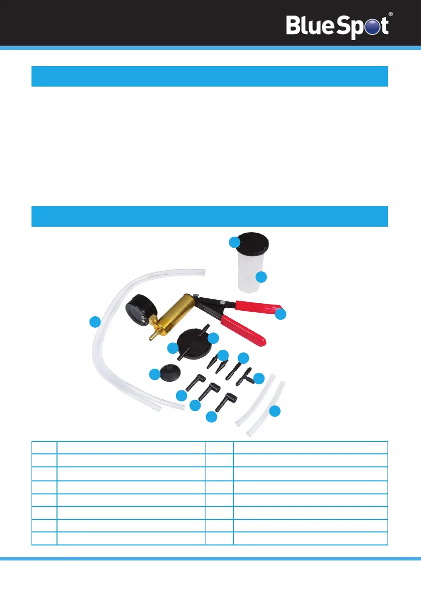 The BlueSpot Brake Bleeder and Vacuum Pump Kit is a multi-use testing tool for fuel,