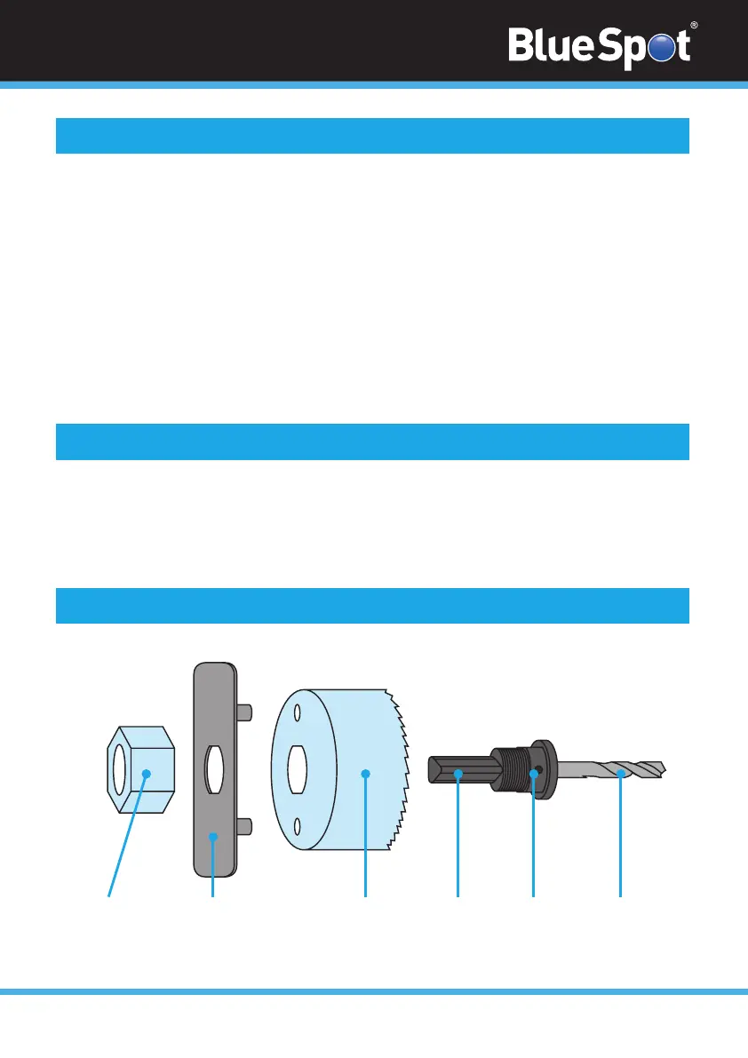 • ALWAYS make sure the holesaw has been attached to the drill correctly and there is a