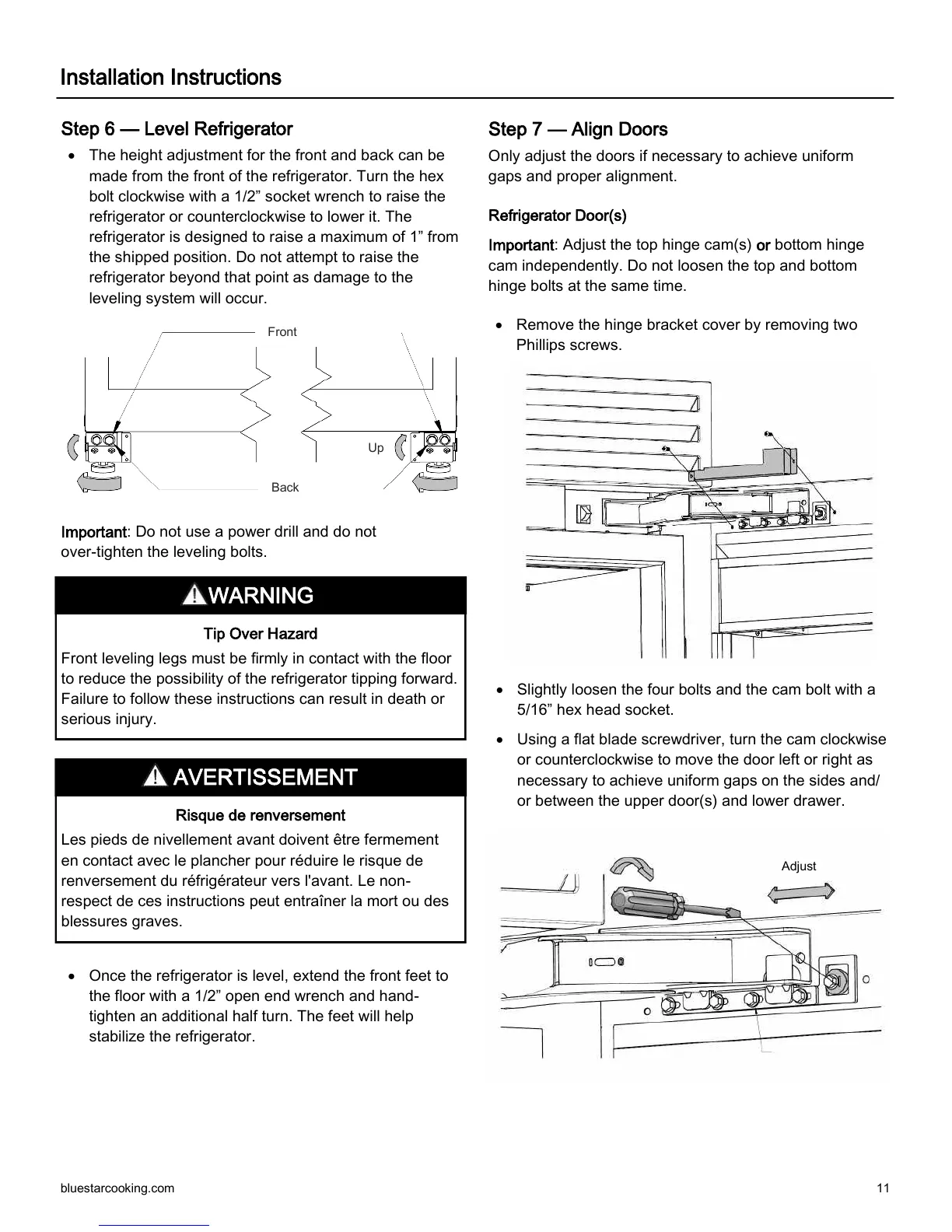 Important: Adjust the top hinge cam(s) or bottom hinge