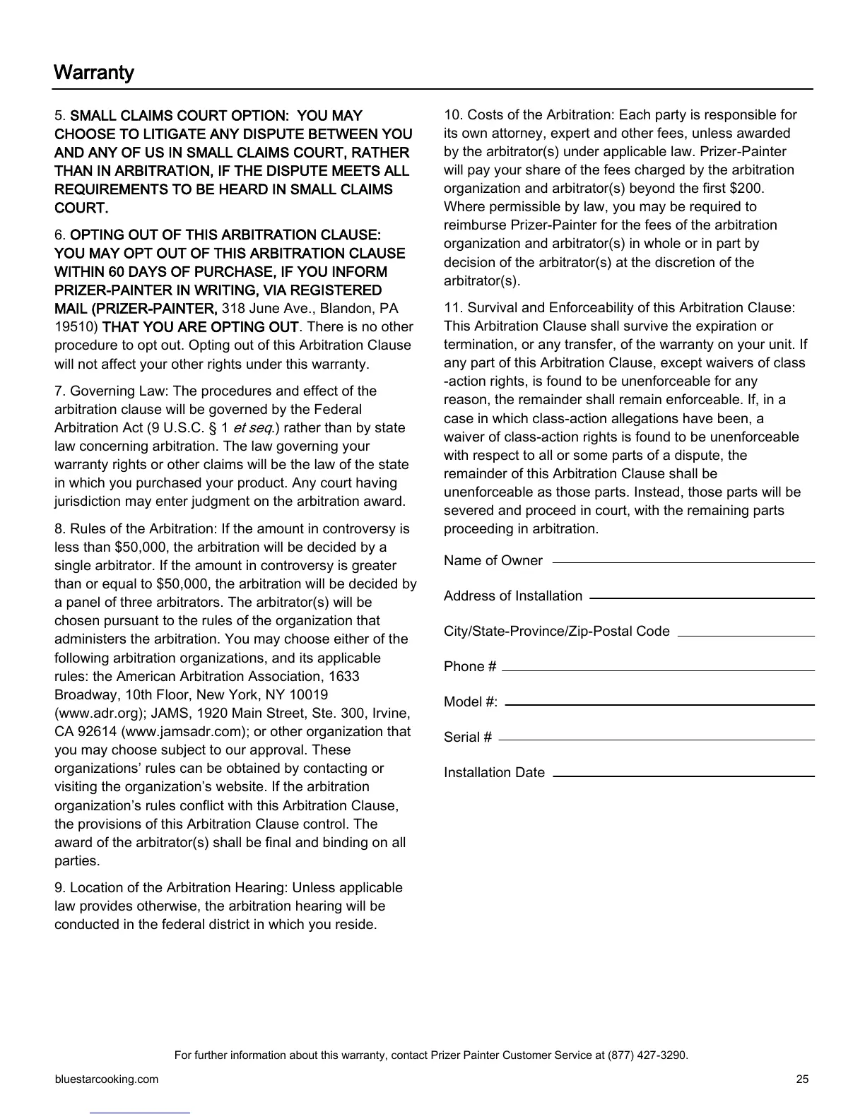 For further information about this warranty, contact Prizer Painter Customer Service at (877) 427-3290.