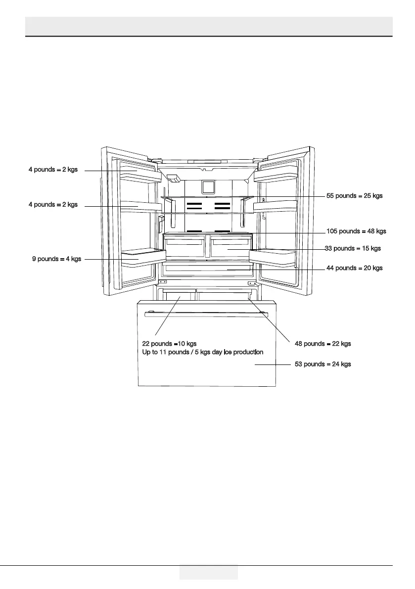 Limites de poids des étagères du réfrigérateur