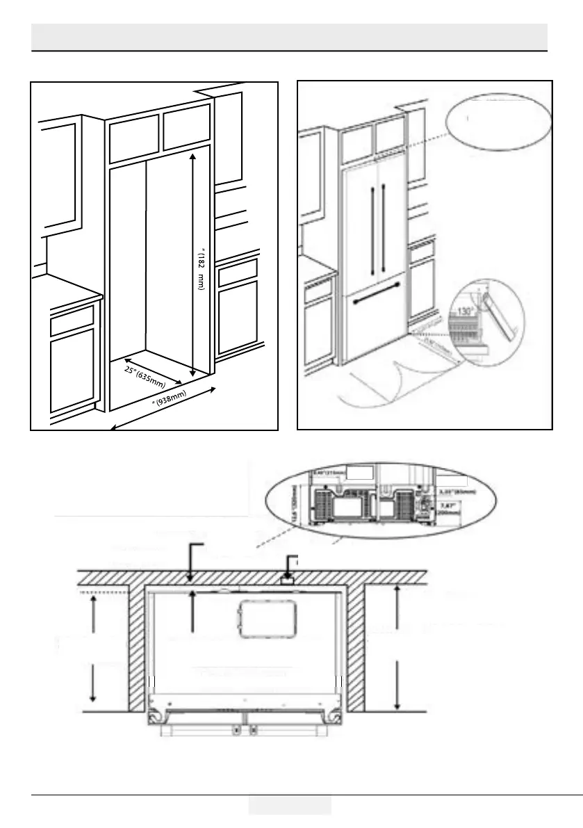 Prévoir un espace de 1 3/8’’(35 mm) à