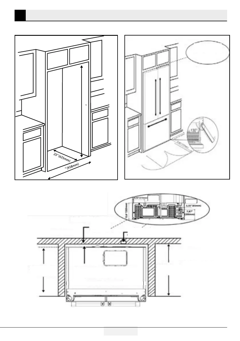 Allow 1 3/8’’ (35 mm) mm. clearance at