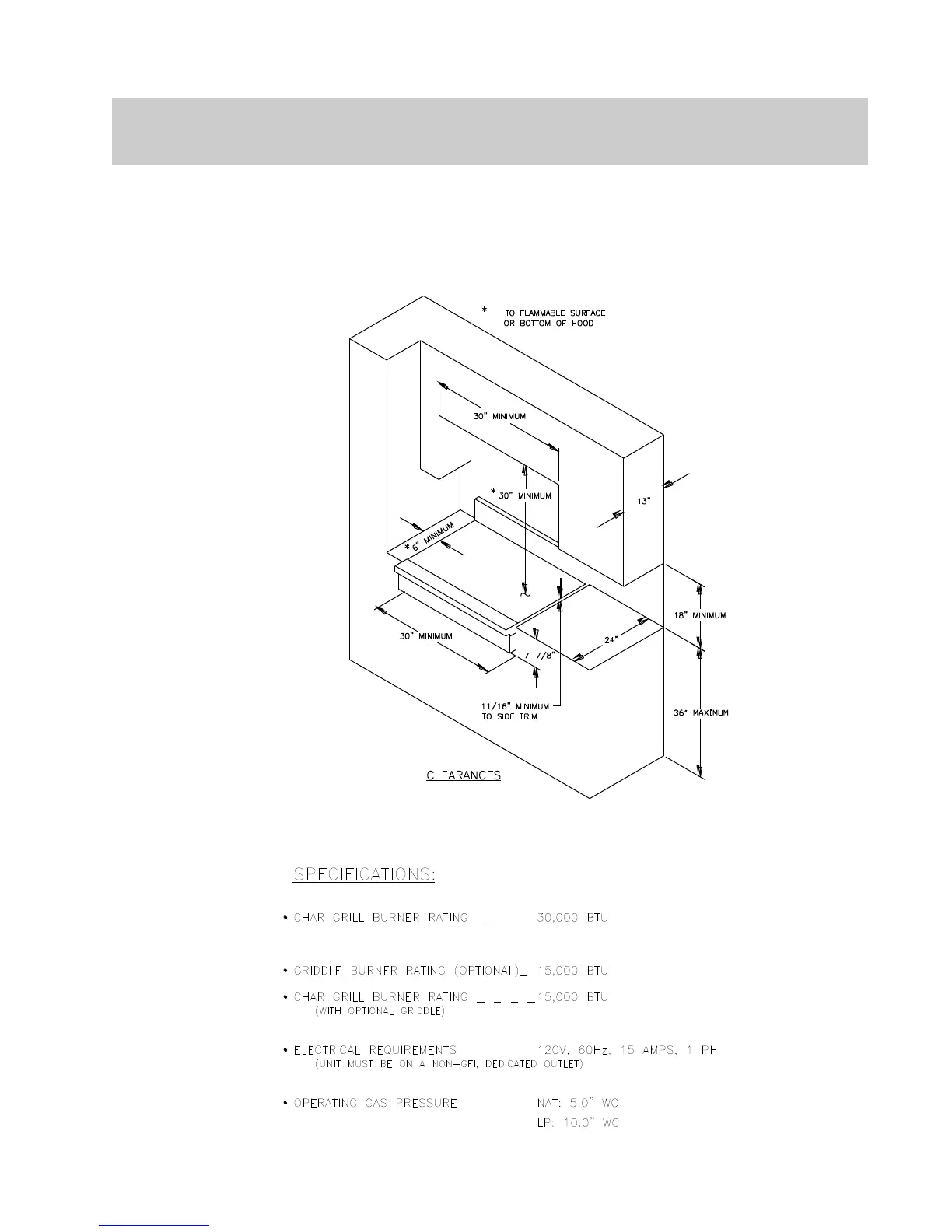 30 INCH INDOOR CHARBROILER CLEARANCES