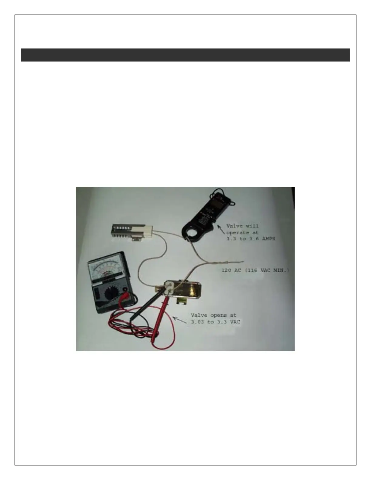operating. An ammeter should be inserted in series with one lead of the igniter or any amp probe attached to the igniter will check the