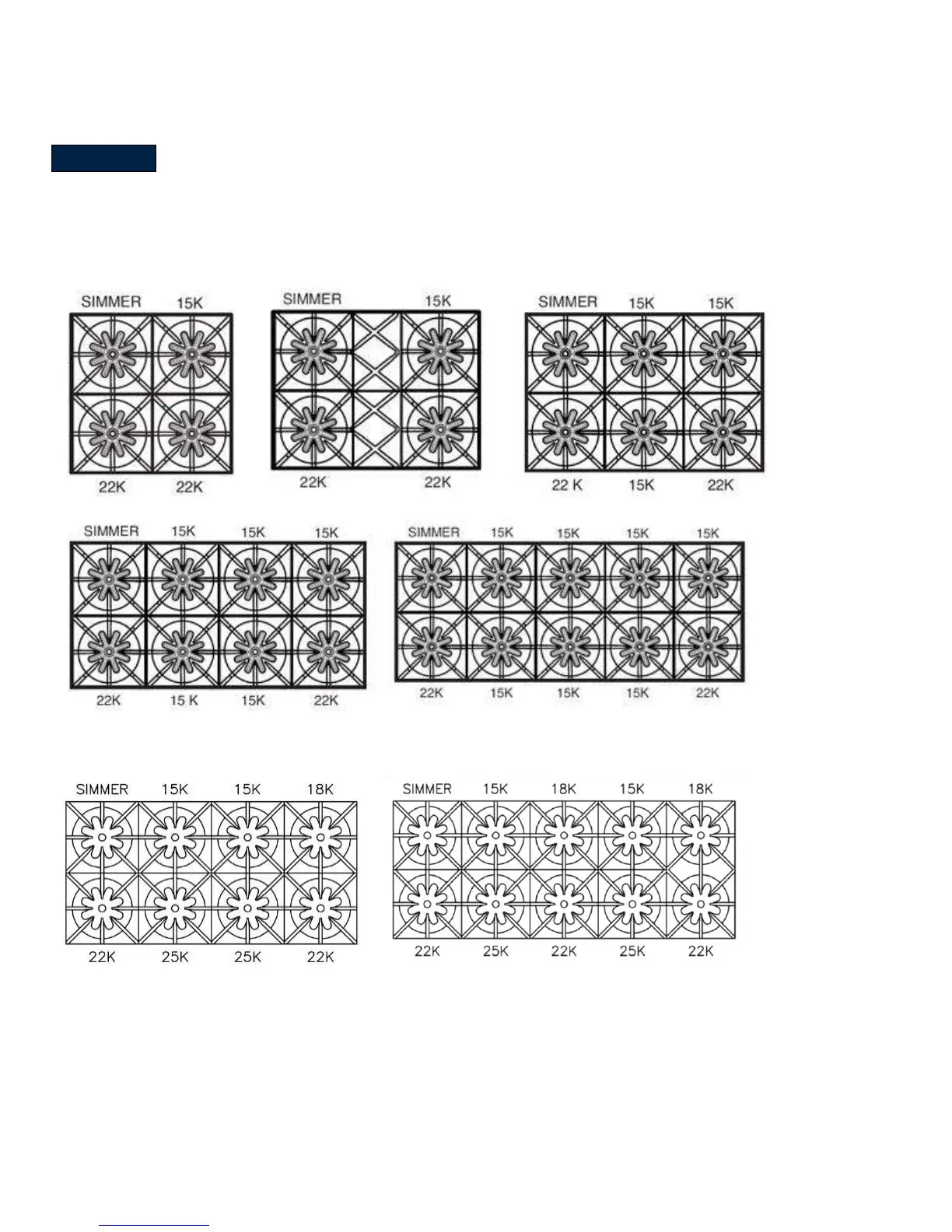 Become familiar with the location of your burners. Below are the standard burner configurations.