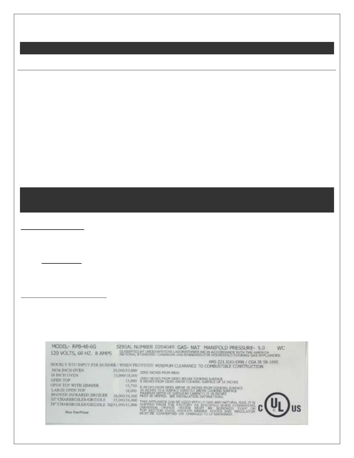 NOTE: All Warranty Serial Plates are located on the top left inner side of the burner box section. The Top Grate and Ring Grate