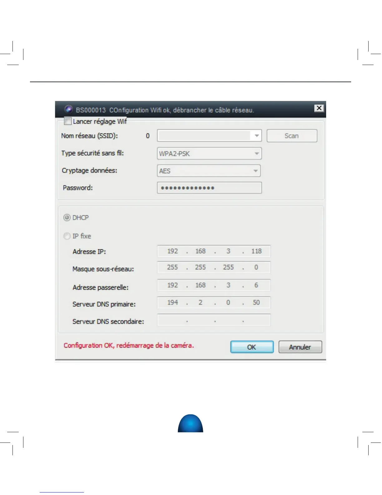 6) Cocher l’option « Lancer réglage WIFI » puis cliquez sur « Scan ».