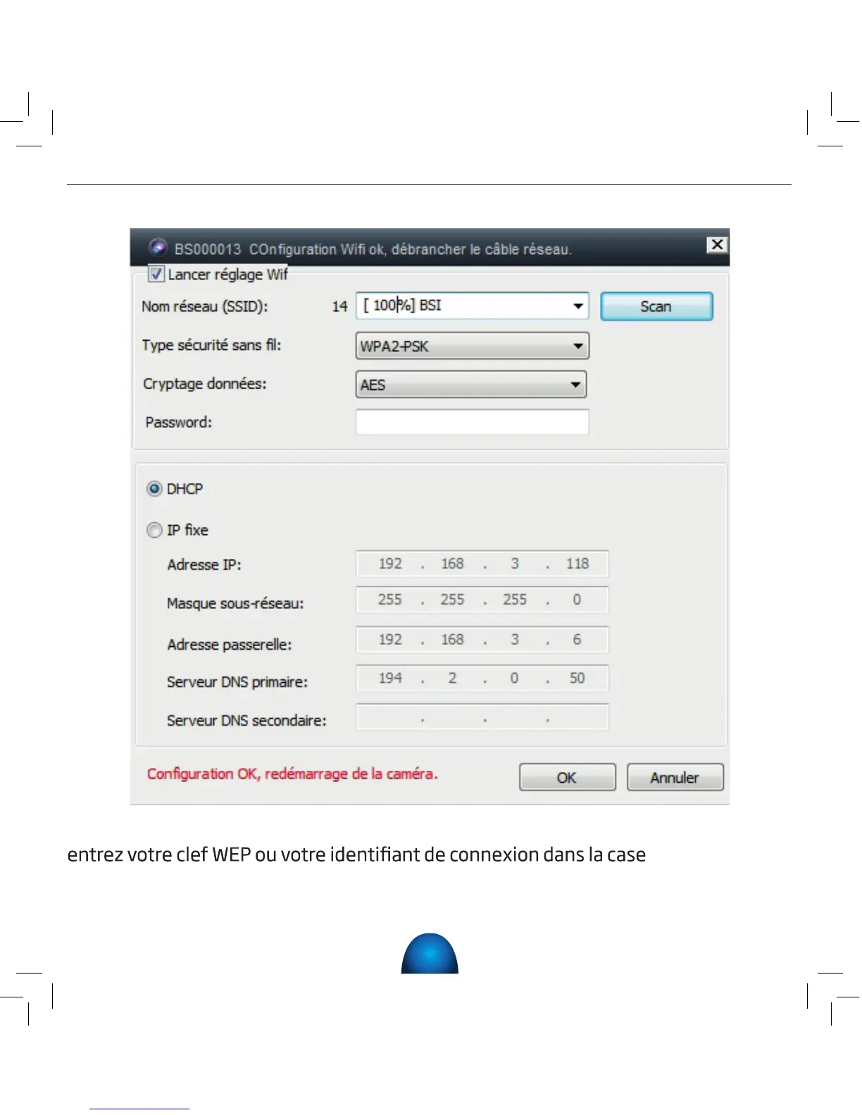 7) Choisissez votre réseau WIFI en le sélectionnant dans le menu déroulant, puis