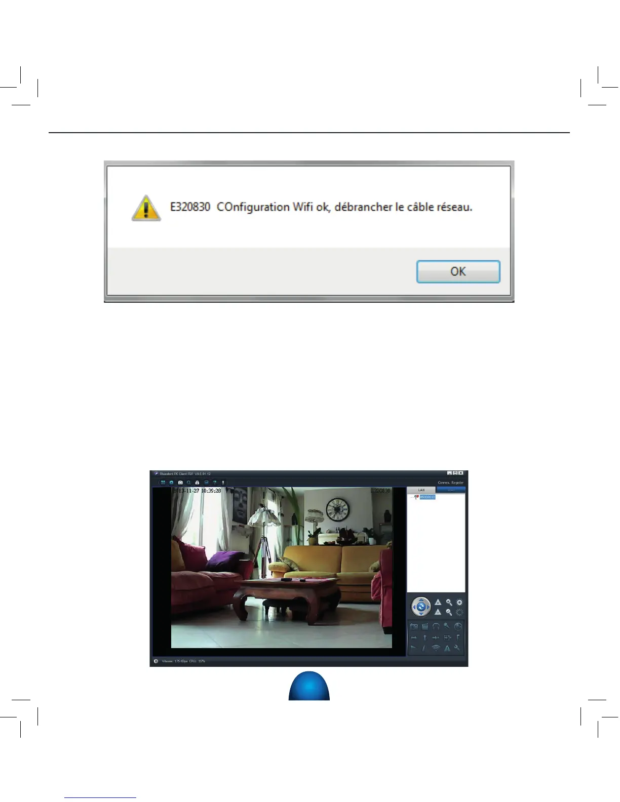 11) La caméra re-boot puis est à nouveau fonctionnelle et les images visibles dans le