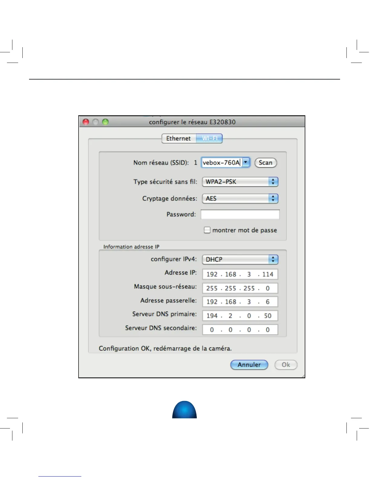 Cliquez sur « SCAN » et dans la fenêtre « Nom de réseaux (SSID)» choisissez le