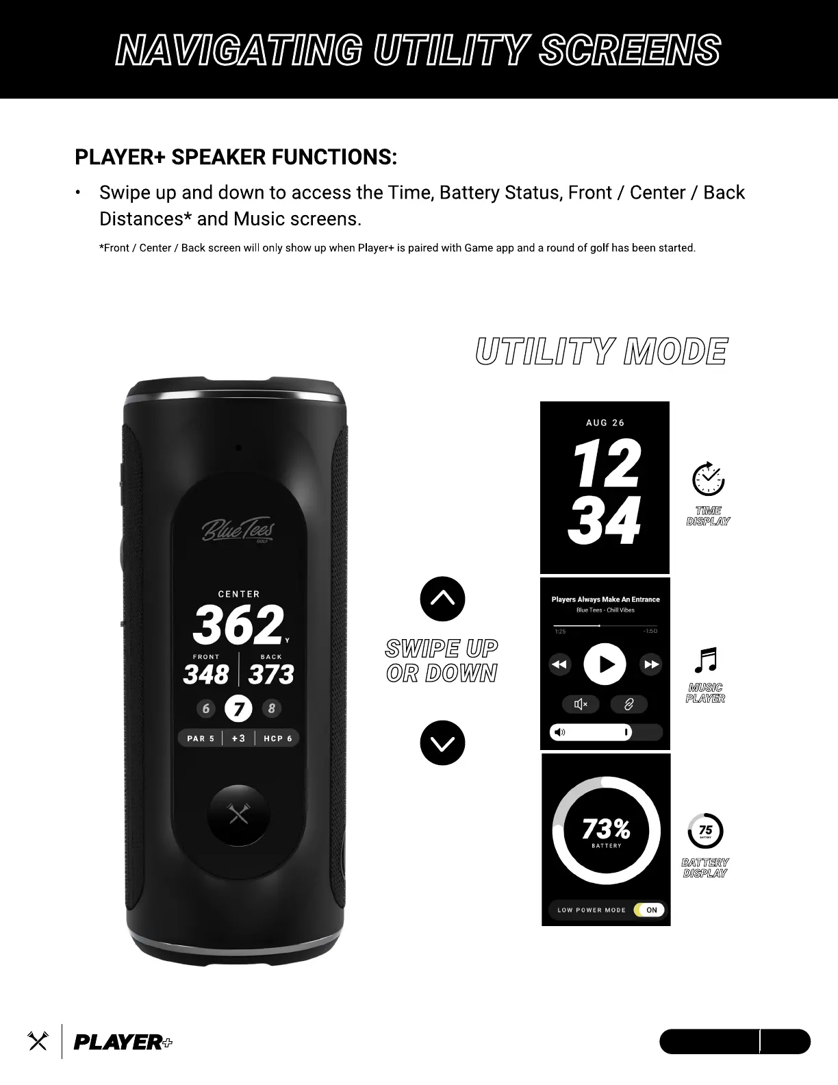 BlueTees PLAYER+ - Navigating Utility Screens