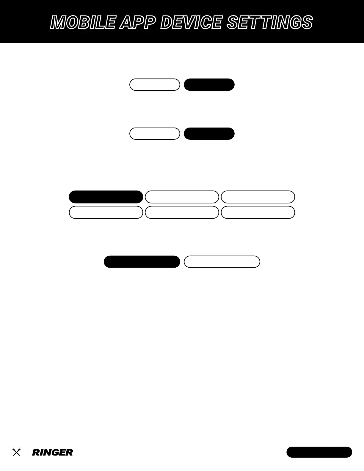 BlueTees Ringer - MOBILE APP SETTINGS MANAGEMENT; Idle Mode Configuration; Hazards Screen Options; Action Button Assignment
