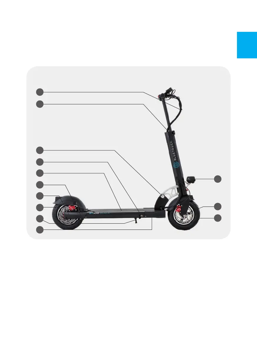 BLUETOUCH BT500 - Features of Individual Components; Front LED floodlight; Alloy wheel axle; Front 10 inflatable tire