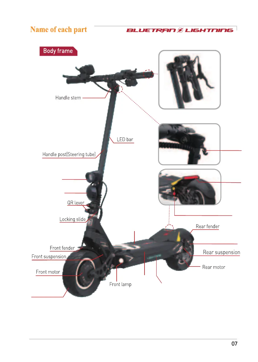 BLUETRAN LGMJ1 - Name of Each Part; Body Frame and External Parts Identification