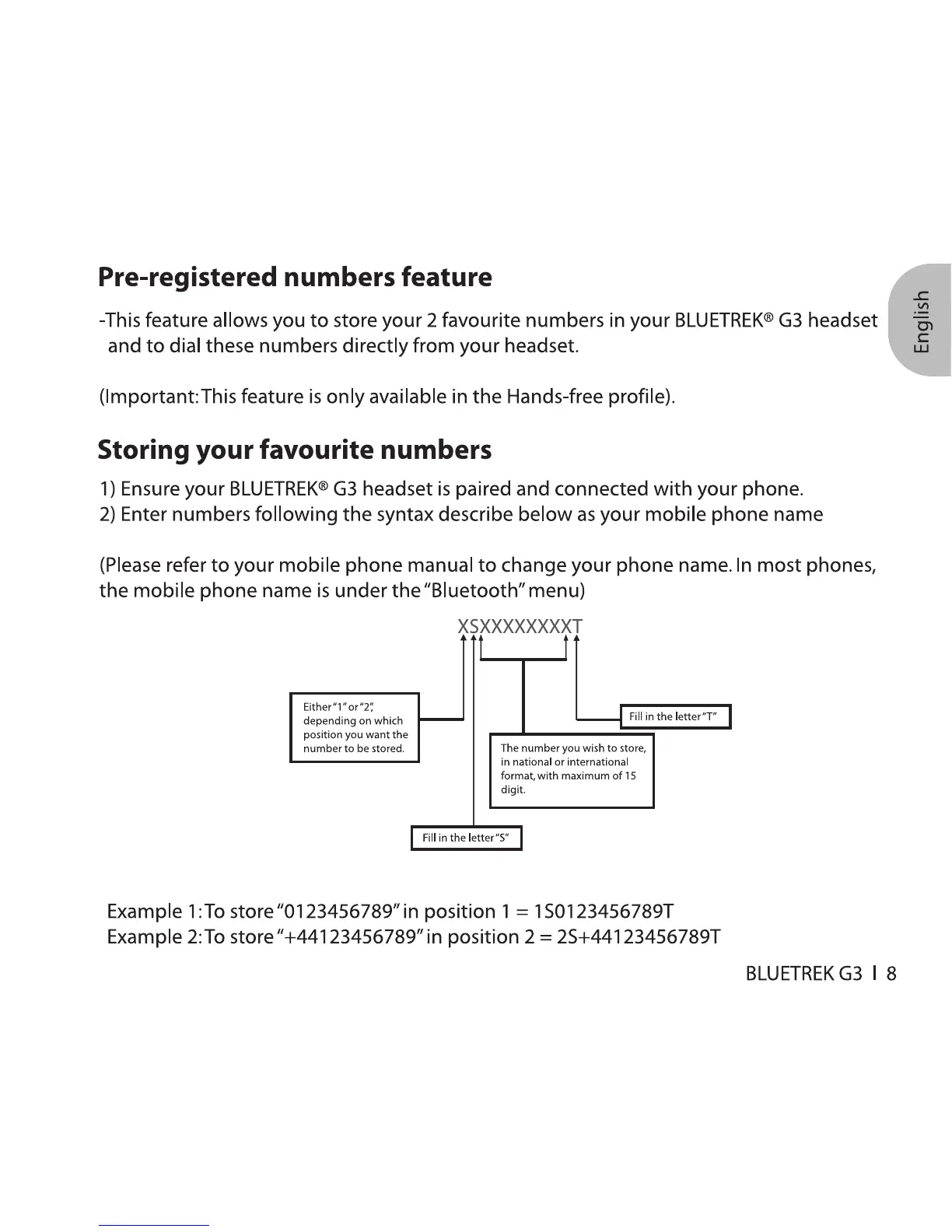 BlueTrek G3 - Pre-registered numbers feature; Storing Favourite Numbers