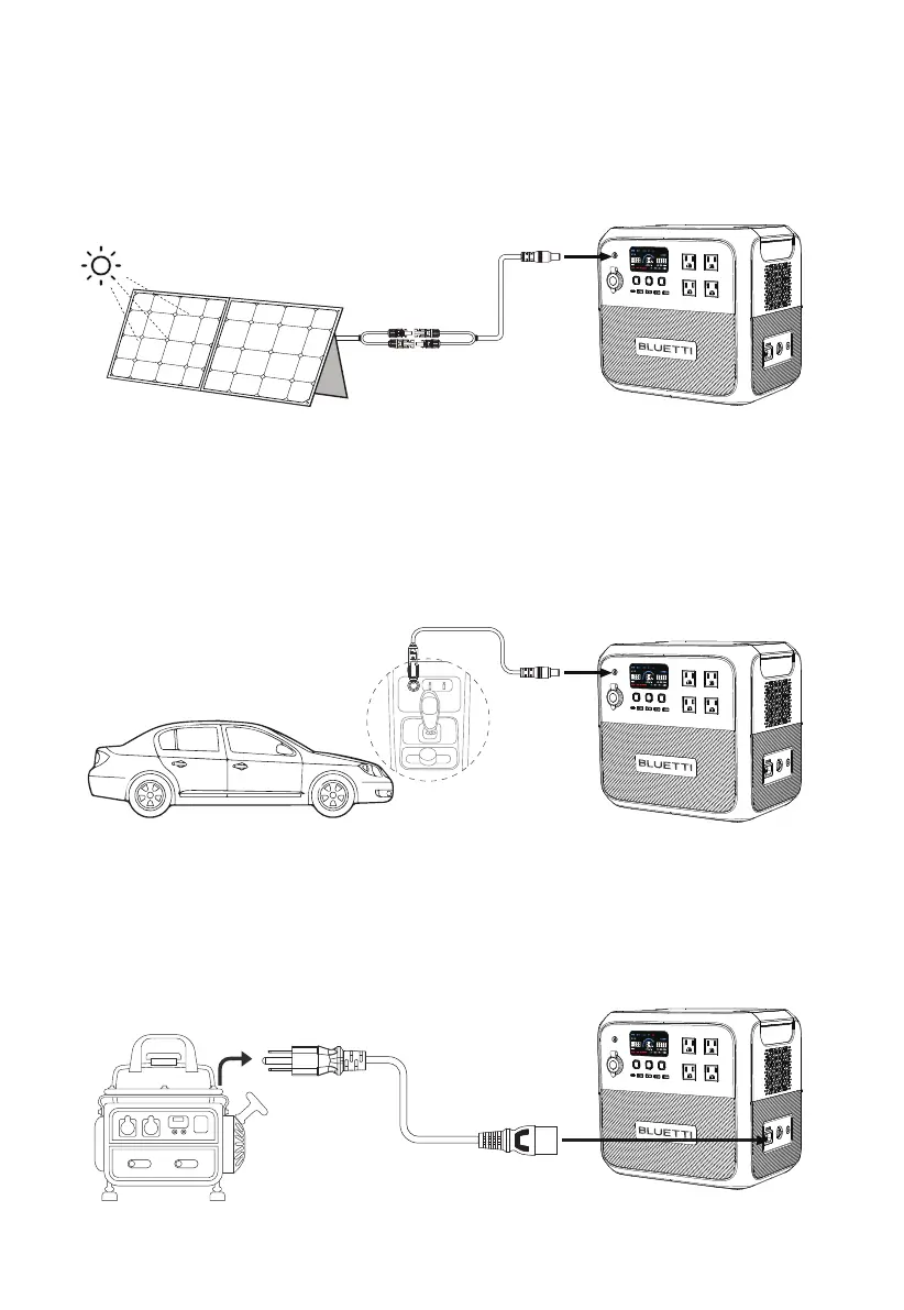 Connect the solar panels (in series or parallel) to AC180P via the solar charging cable.