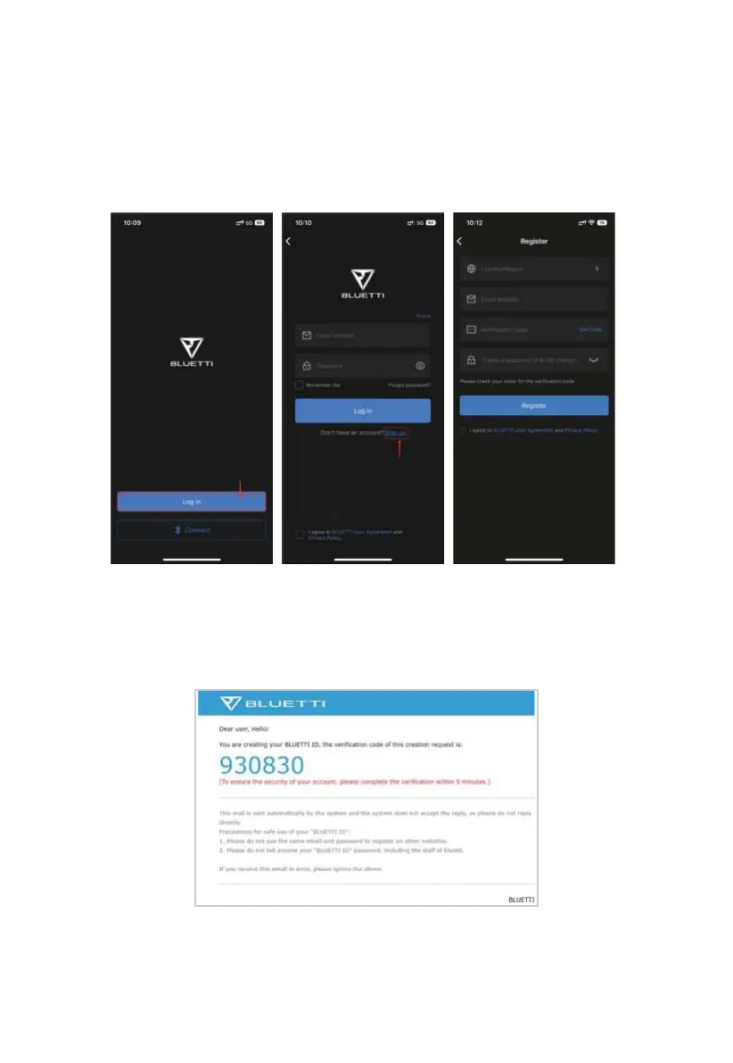 • Toque em “Login” para registrar sua conta BLUETTI. Preencha as informações