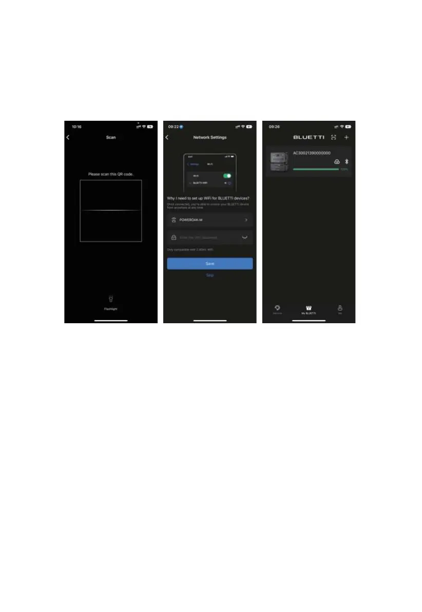 Conecte o AC300 ao B300. Digitalize o código QR exclusivo no AC300 para