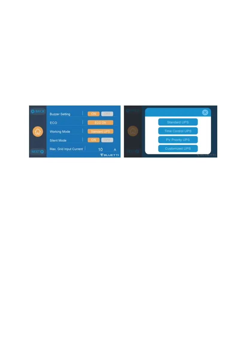 O modo de trabalho é definido por padrão como “UPS padrão” .