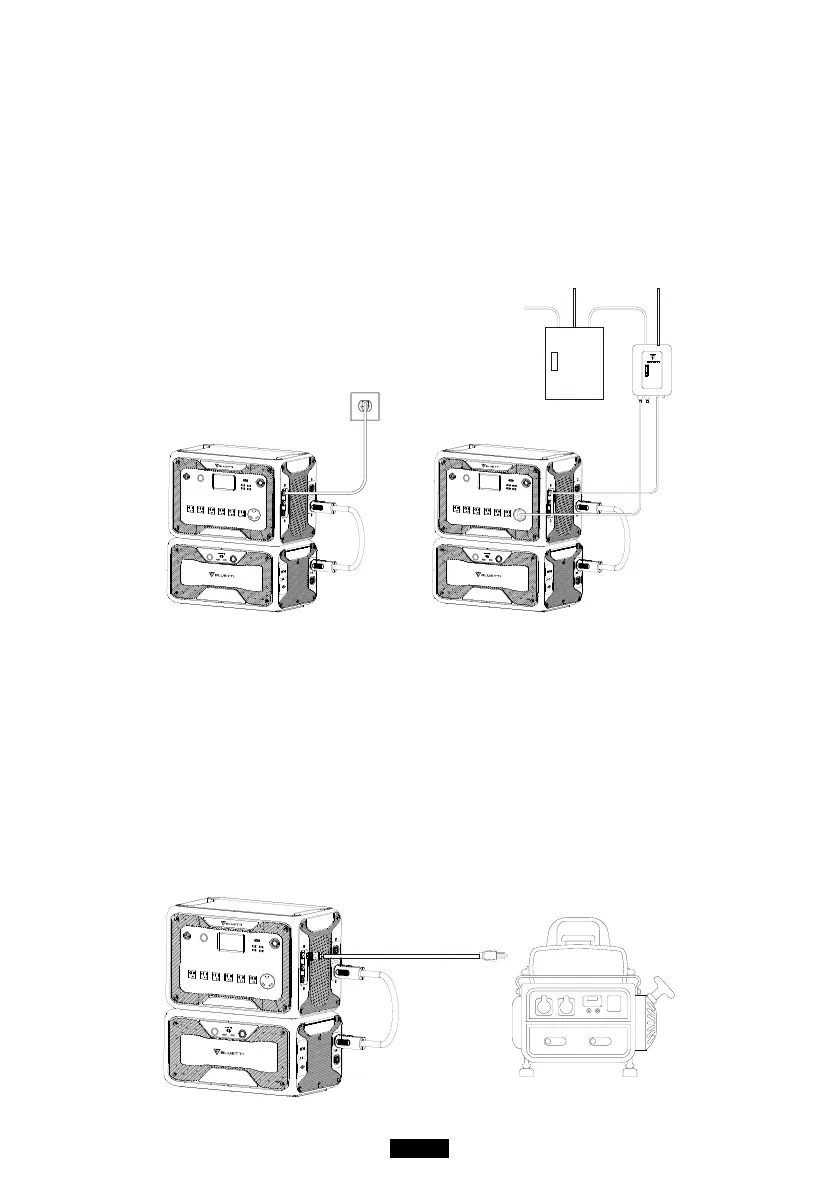 Charging via wall outlet Charging via BLUETTI Sub Panel
