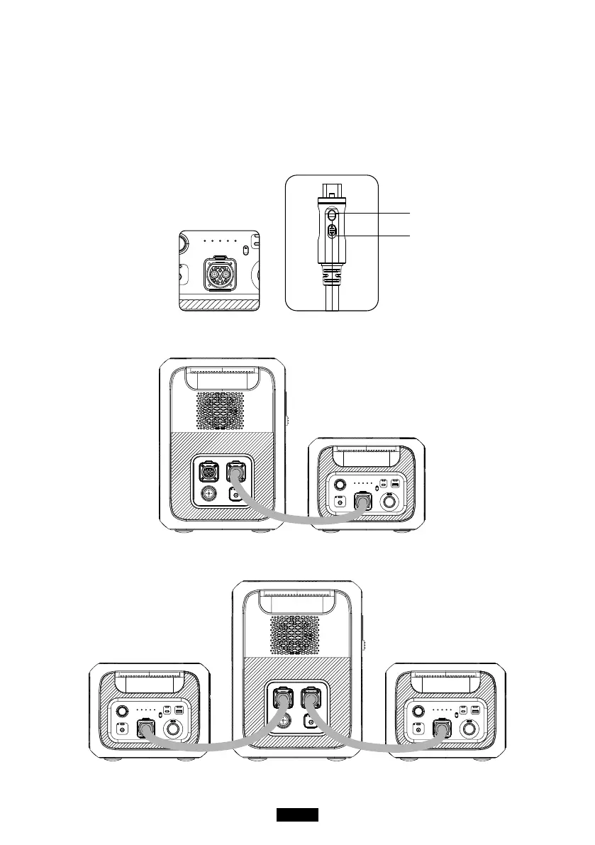 Step 2: Press the button(a) and fully plug Battery Expansion Cable