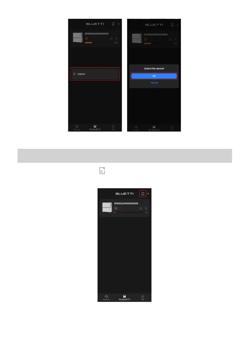 On the My BLUETTI page, tap the icon in the upper right corner to view the product