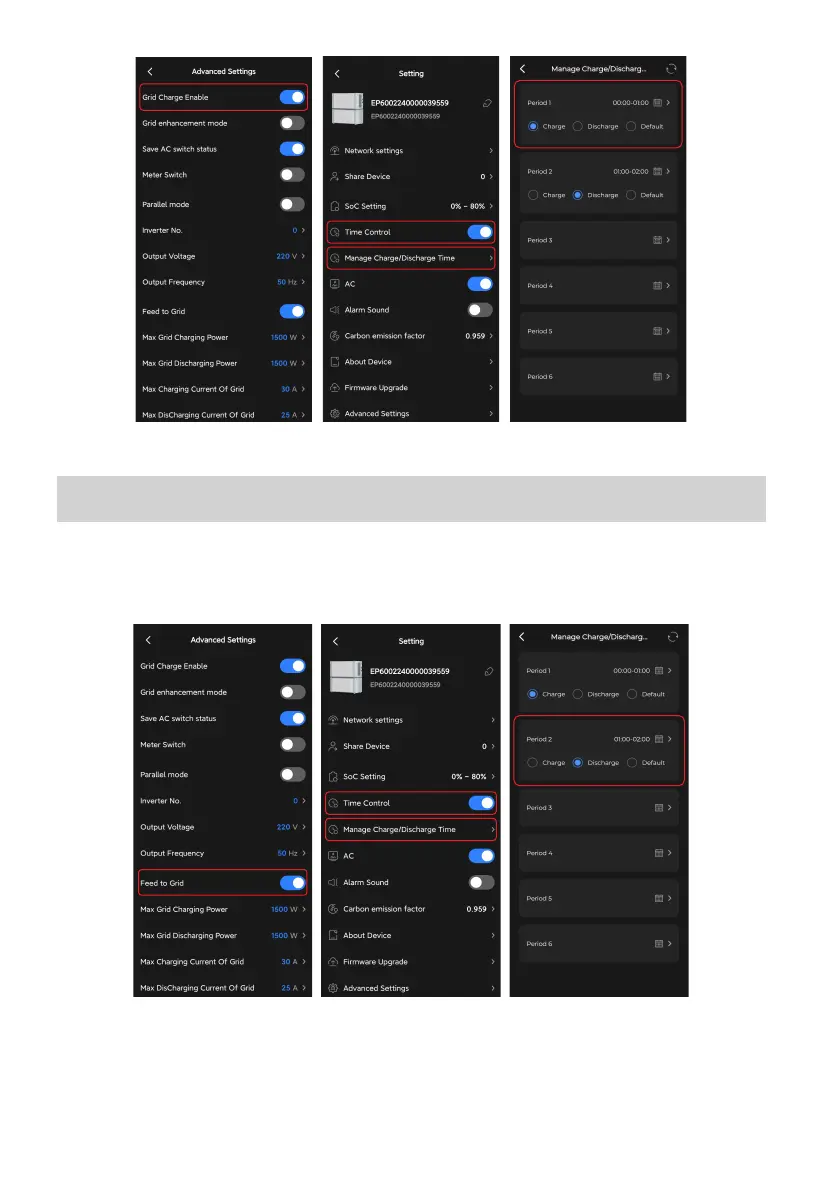 grid feed-in, just follow the above steps and select Discharge instead.