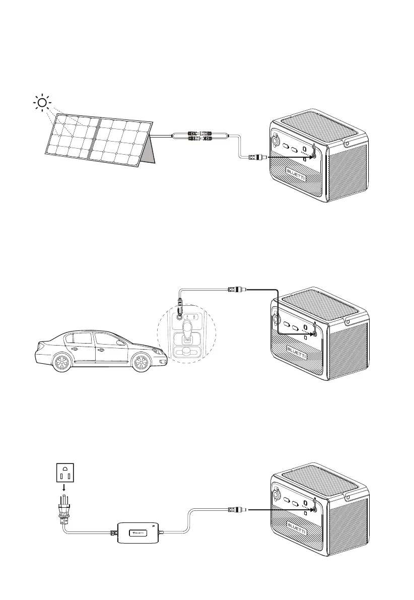 Connect the solar panels (in series or parallel) to B80 via the solar charging cable.