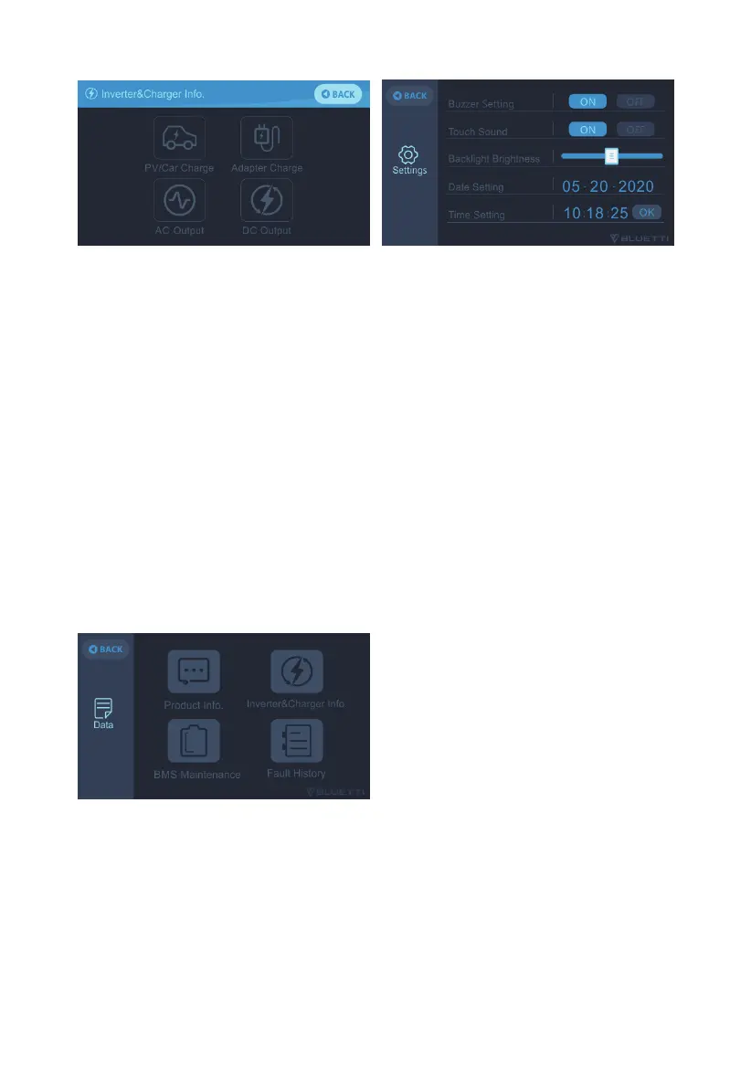 ●Click the “ Inverter & Charger Info” button, you can view the PV / Car operation and the