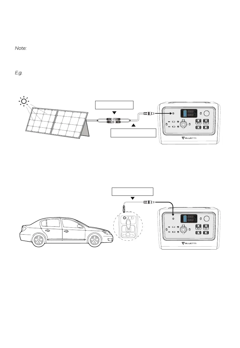 Connect the solar panels (in series or parallel) to EB70S via the solar charging cable.