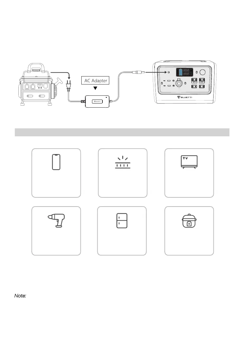 Connect the AC adapter input plug to the generator while the output plug goes to the charging