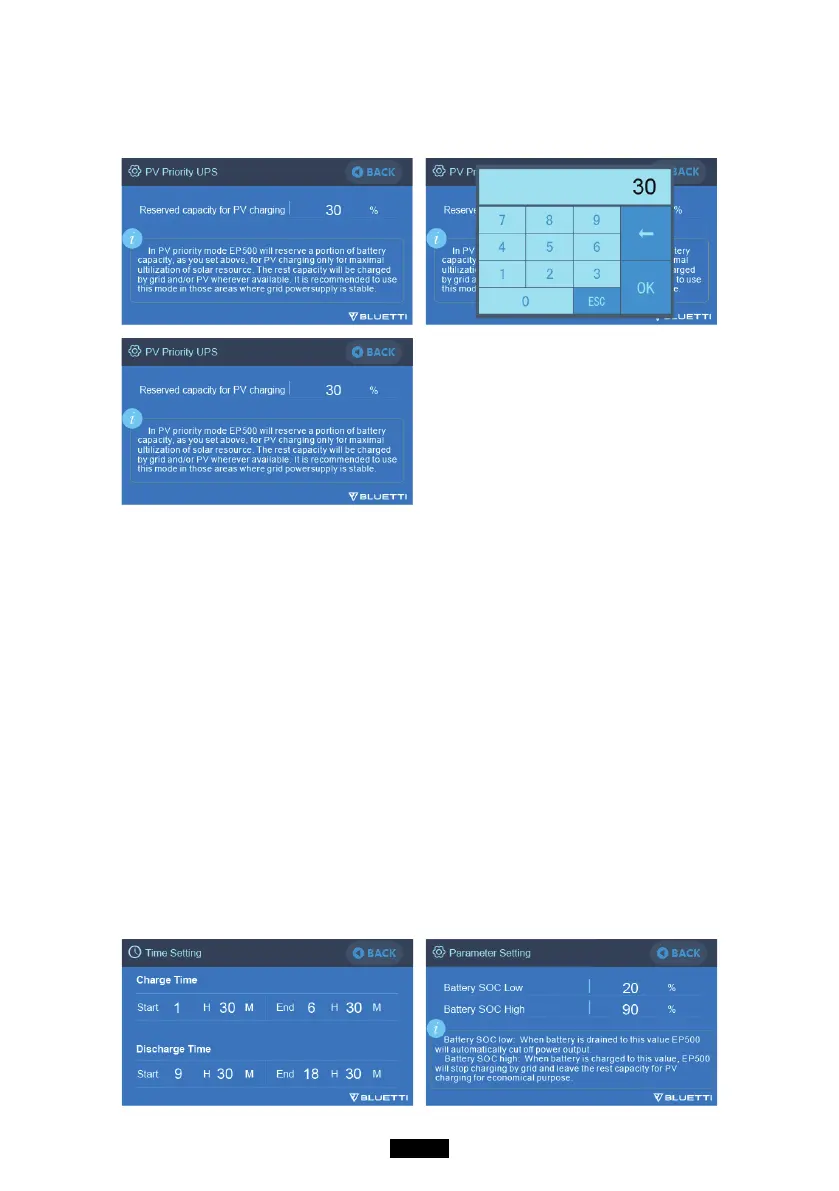 ●User can set the Reserved capacity at 100% to let EP500 always be charged