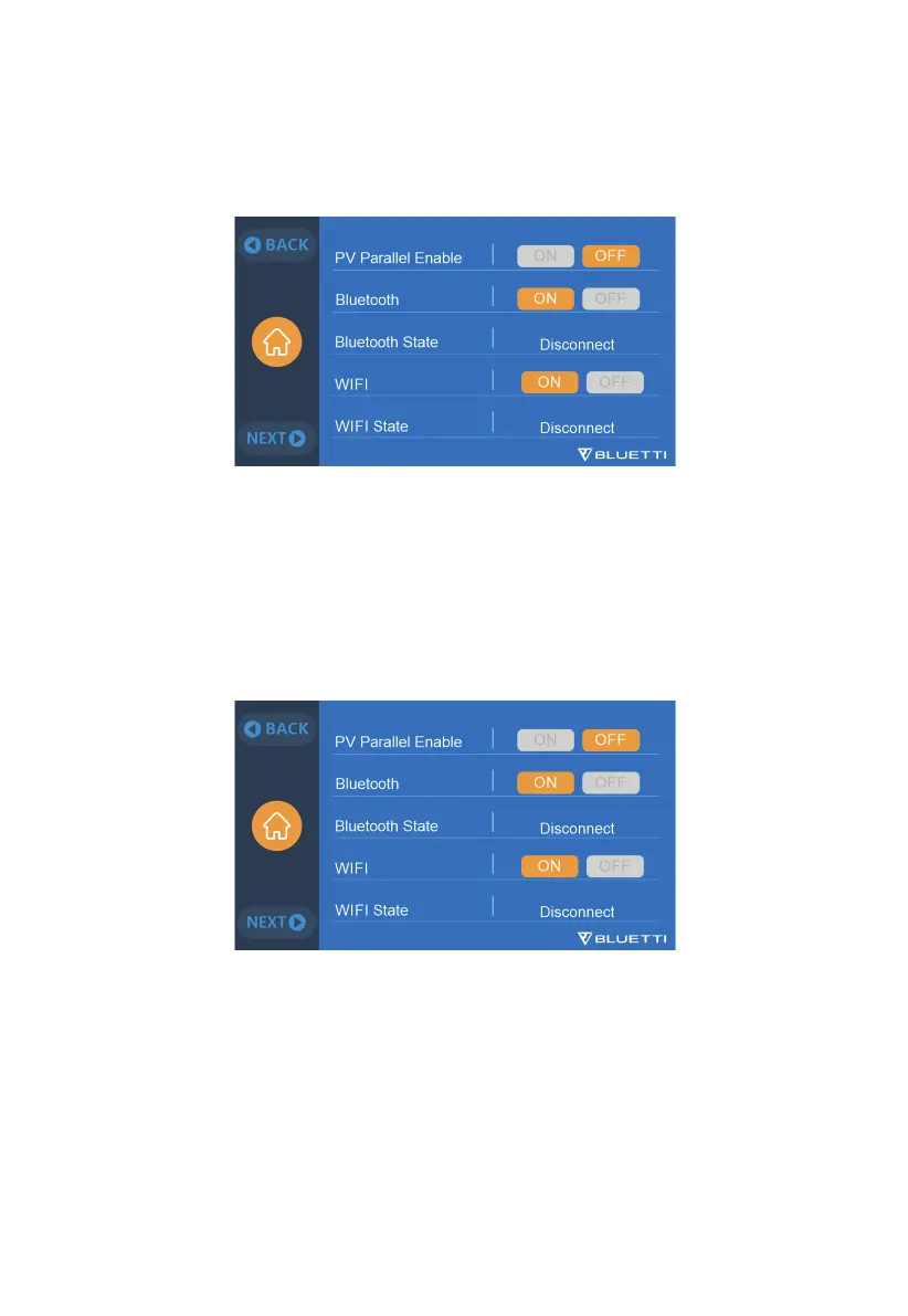 The Bluetooth and Wi-Fi connection can be turned ON/OFF by tapping the ON