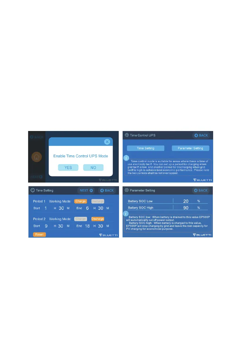 Charge Time: The period when EP500Pro charges via the grid. Choose to