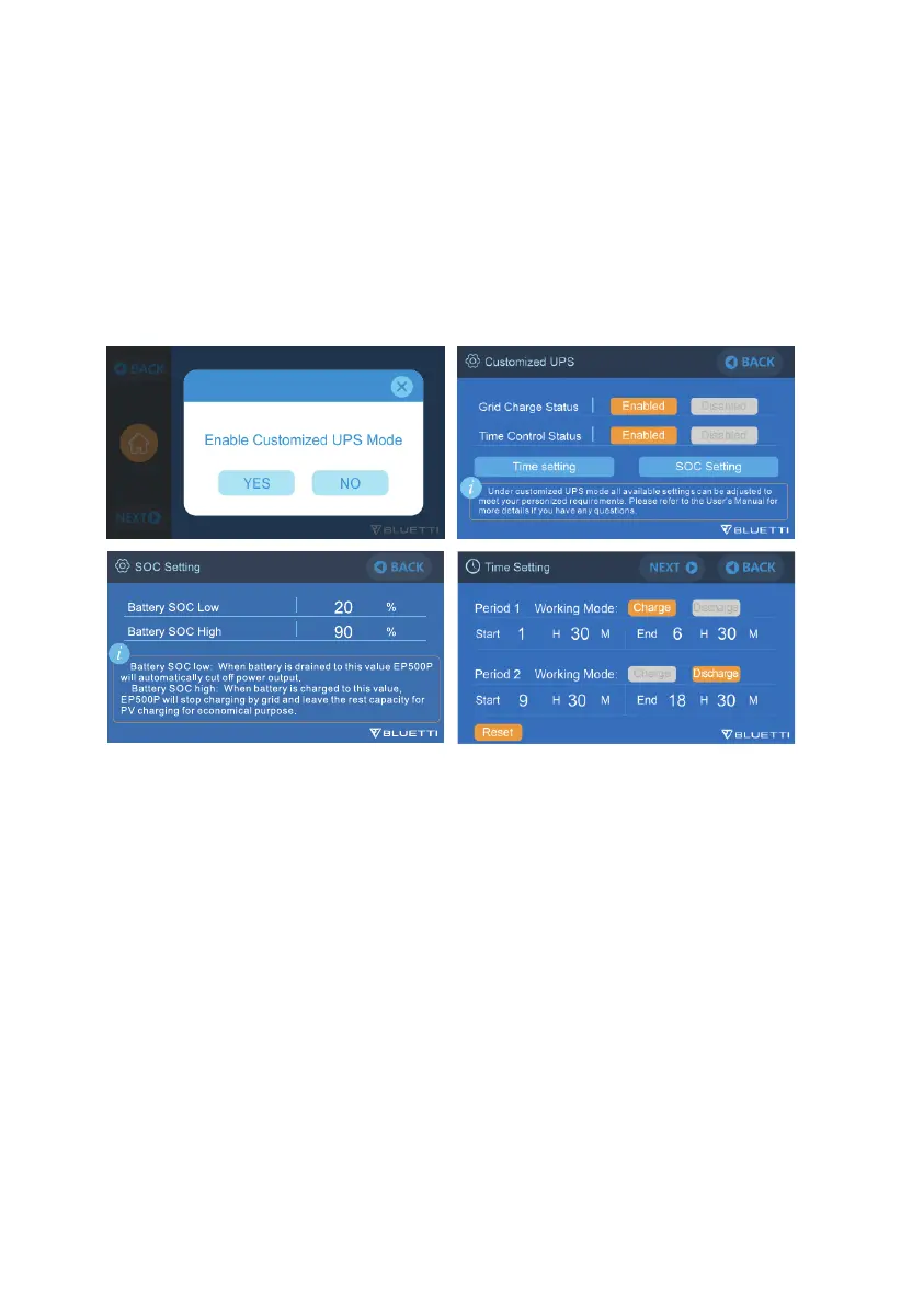 The "Time Setting" and "SOC Setting" also take effect in Time Control UPS and PV