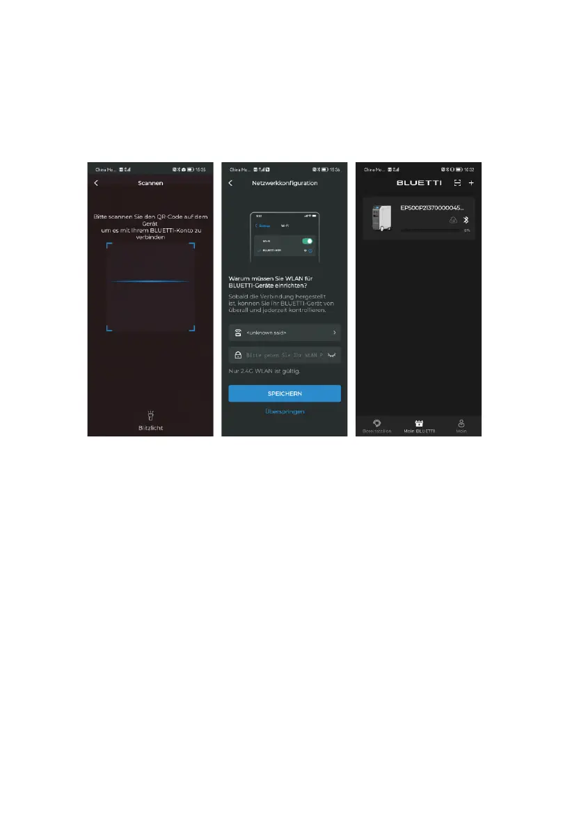 • Scannen Sie den auf der EP500Pro abgebildeten QR-Code, um das Gerät in der App zur