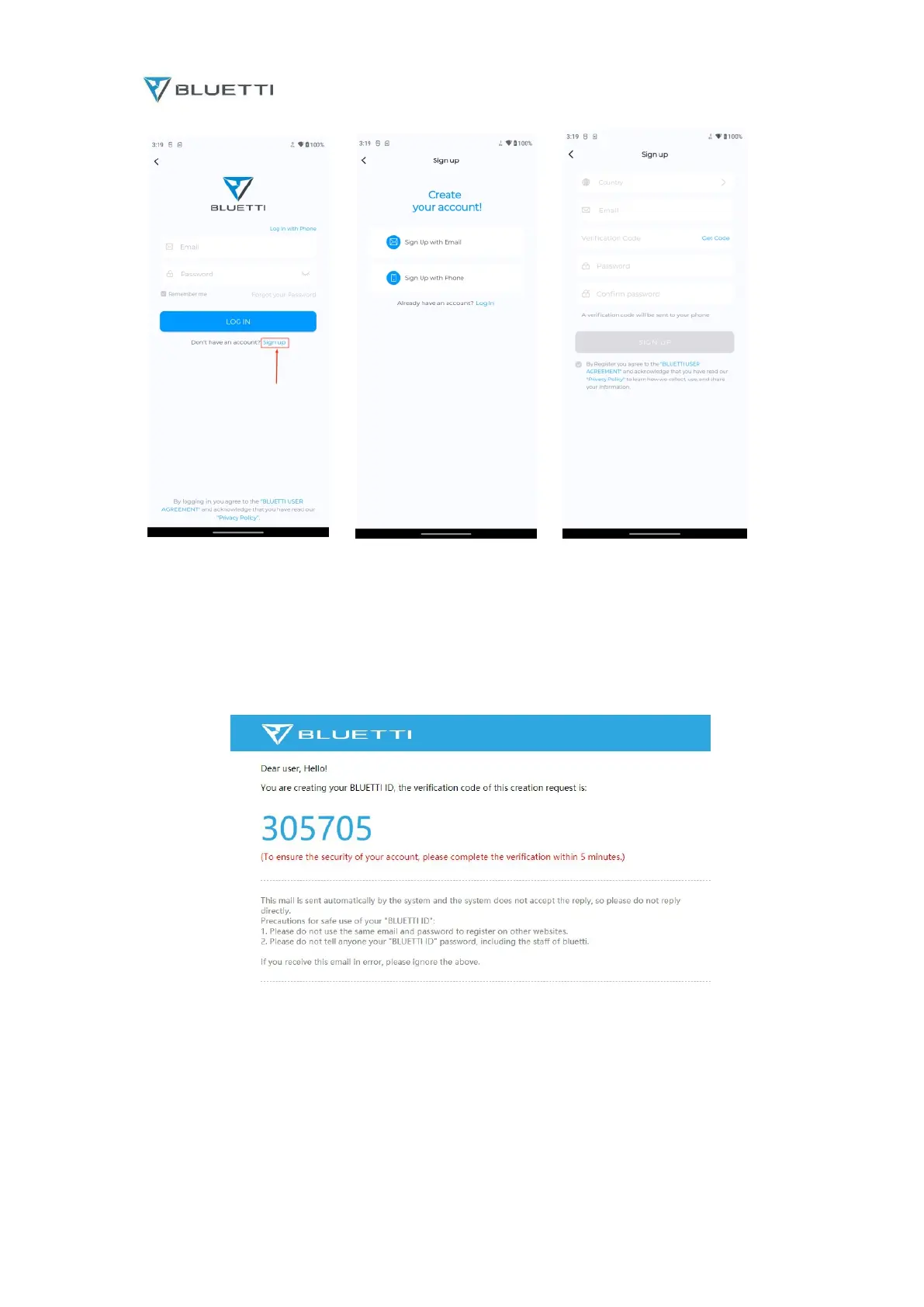 BLUETTI will send the verification code to your registered email account, and fill in the