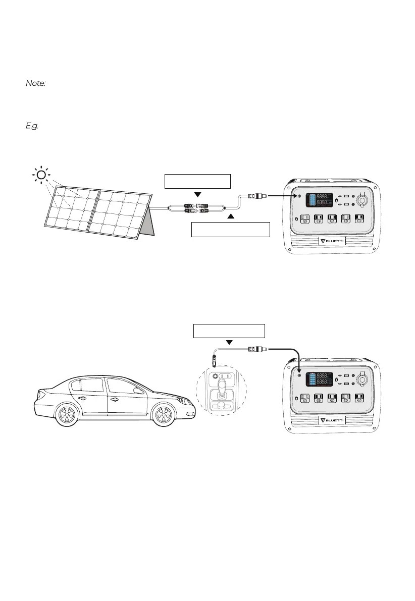 E.g. Use one BLUETTI PV200 solar panel to charge the unit.