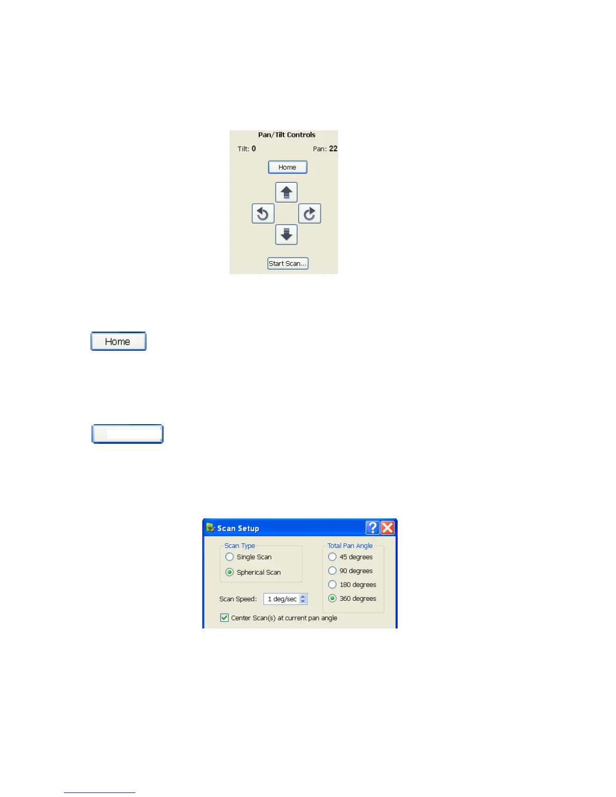 Rotational scans are performed by clicking the Start Scan button on the Pan/Tilt