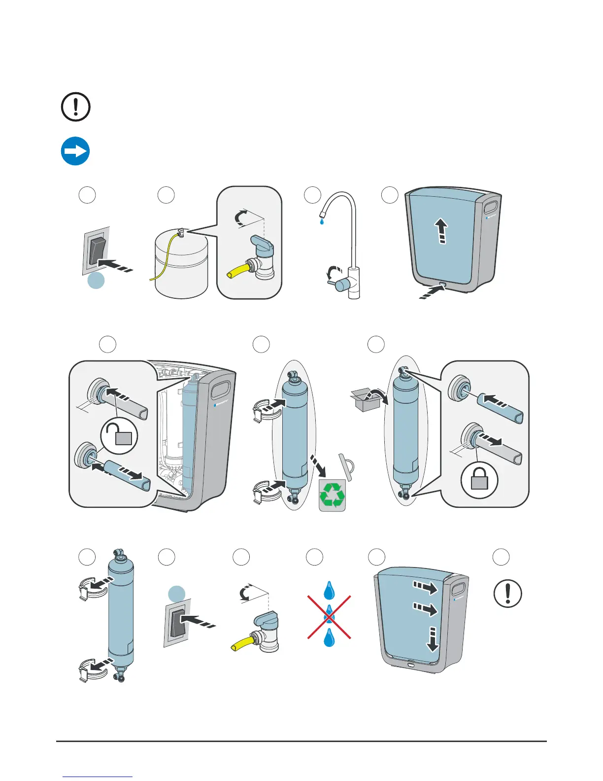 flashes) or if the flow rate is low, replace the reverse osmosis membrane.