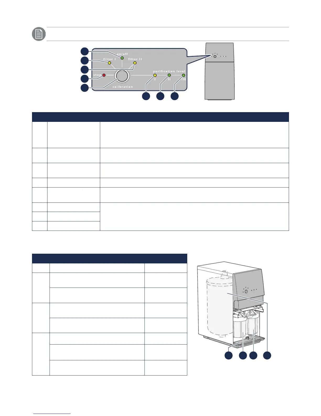 6 purification level I On: Puhdistustaso I-III ilmaisee veden puhdistustason.