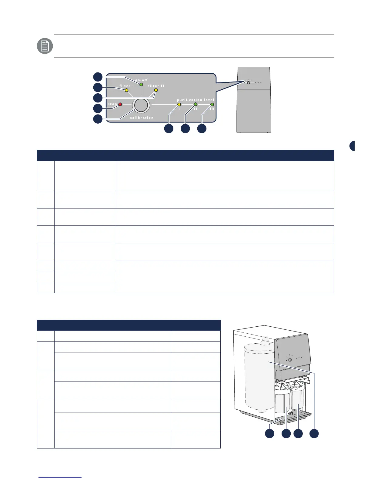 6 purification level I Acceso: Indicano il livello di depurazione dell’acqua pulita, dal