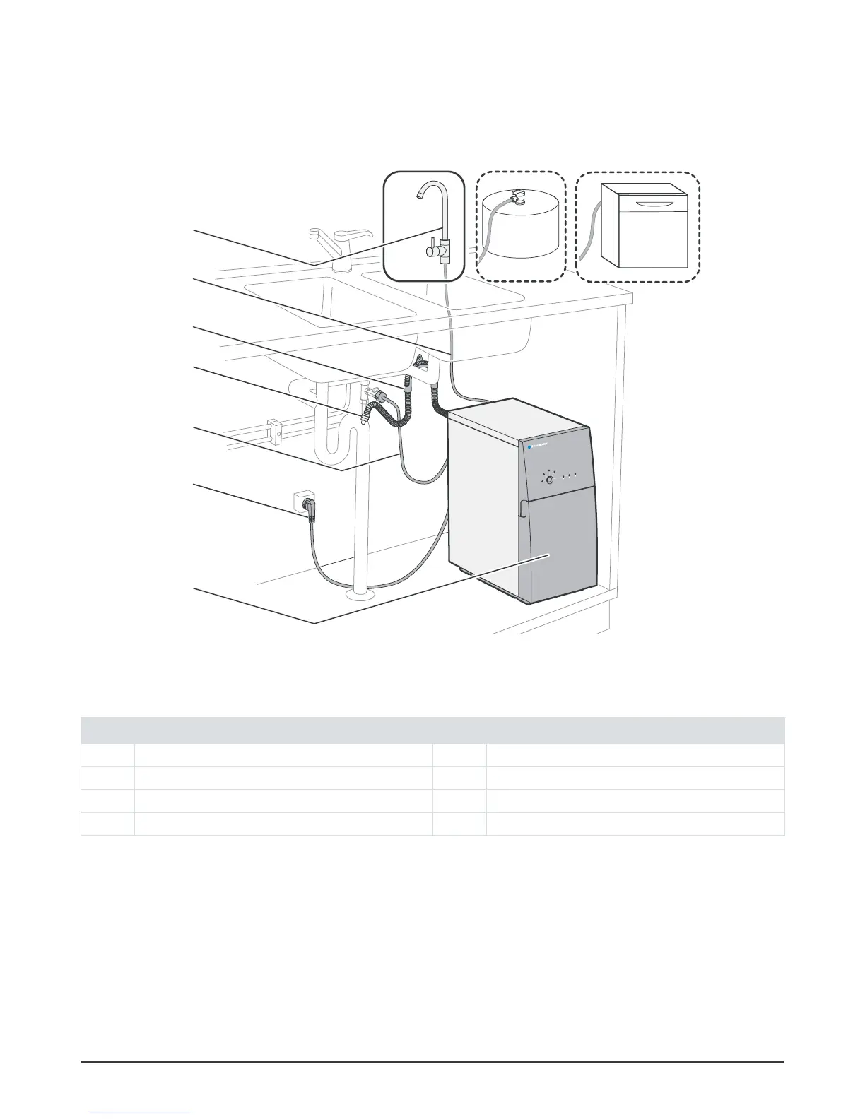 3 Feed water tubing 7 Clean water faucet (optional Pro 400 series)