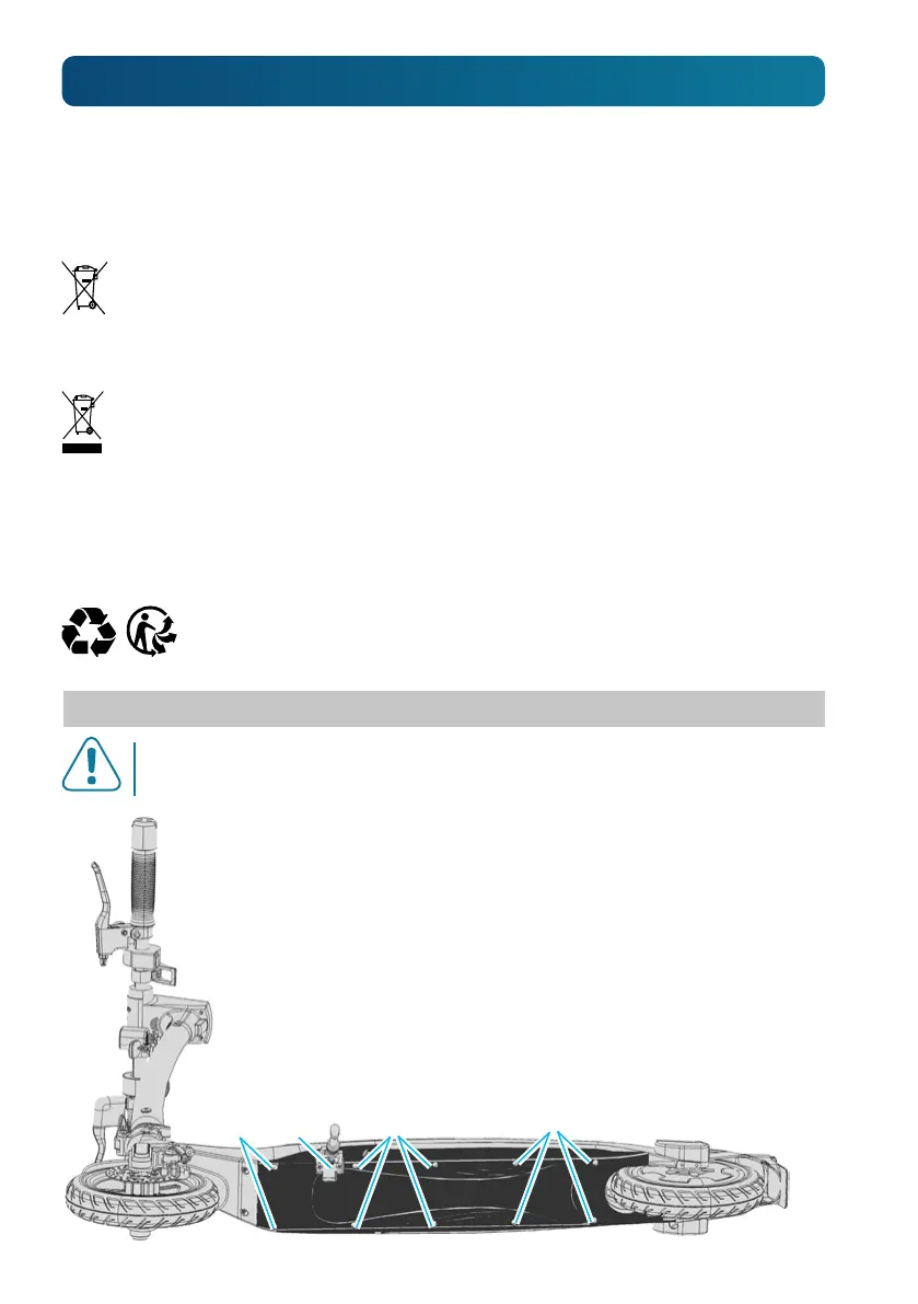 8. Mettez la batterie et l'e-scooter au rebut séparément et de manière appropriée.