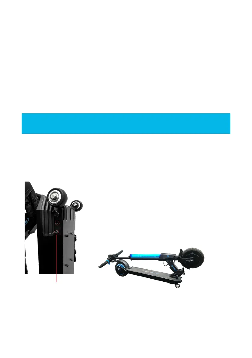 1. Legen Sie Ihren E-Scooter auf die Seite und suchen Sie die 4 Schrauben (2 auf jeder